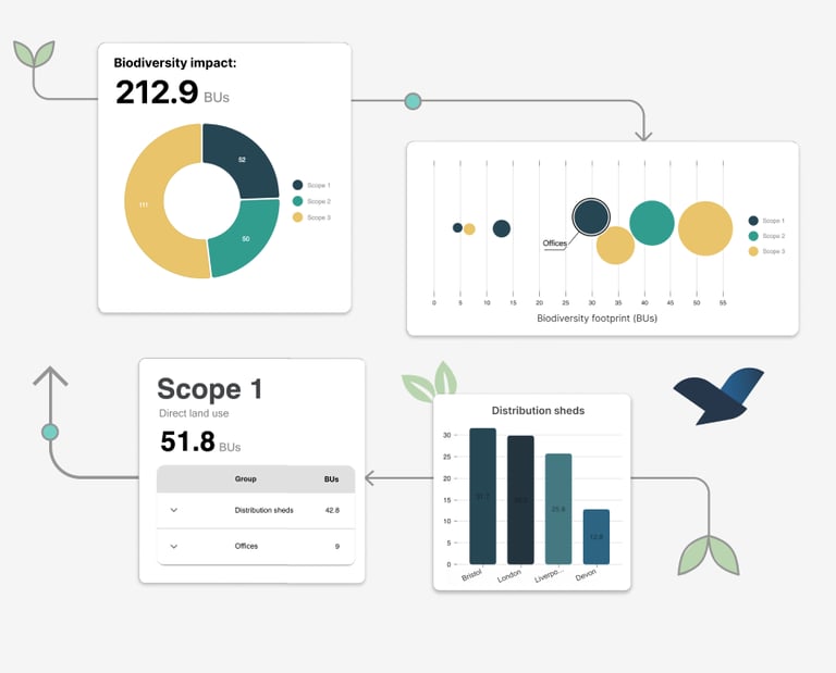Starting with financial spend, we validate & process your data—to reveal your nature & carbon impacts & risks. We screen across the business so you can set nature priorities, delivering the insight you need for strategic sustainability decisions.
