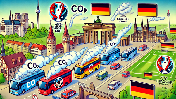 After England lands in Germany, they will have travelled from Berlin to Blankenheim, where the English team is based and thus where they will return to after each game. While they travel by coach between the various cities where their matches will be played en route to the final, they will cover approximately 3,370 miles and emit around 1 tonne of carbon dioxide. Therefore, excluding all their other various travels around Germany such as going to the shops or dining out, the English team will emit 41 tonnes of carbon dioxide from travel alone.